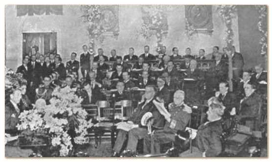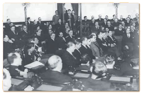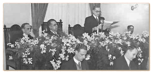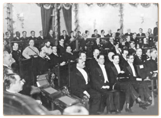 A cabeceira das duas mesas dos Presidentes das duas Câmaras vê-se um belo busto da República.