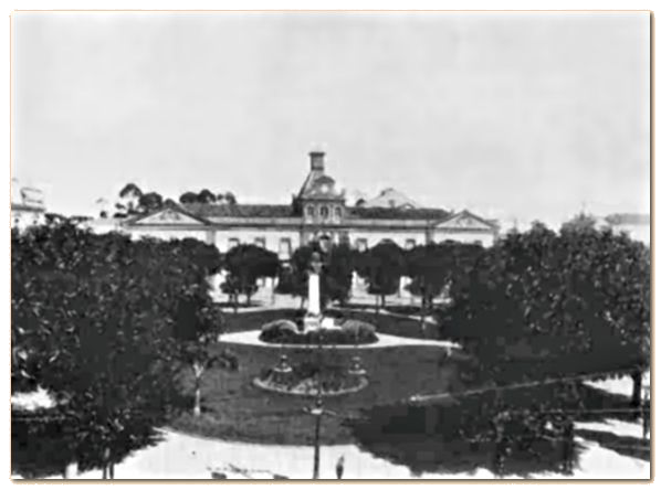 (…) Tem um jardim no centro com um pavilhão e é percorrido de dois lados pelos bondes da liberdade e Ponte Grande. Aí fica o edifício da Assembléia, a Biblioteca Pública do Estado, o Teatro de S. José (em reconstrução), as Igrejas de S. Conrado e dos Remédios e o estabelecimento gráfico de V. Steidel & Comp.