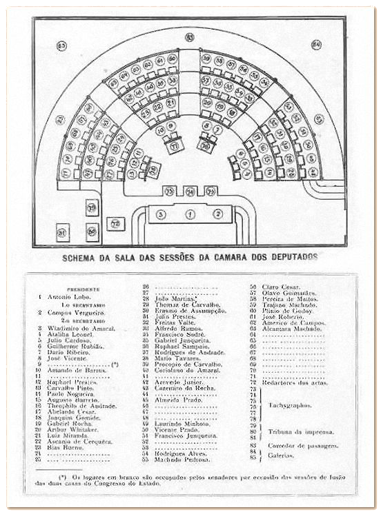 Em 1891, a Assembléia Provincial deu lugar ao Congresso Legislativo do Estado,que abrigava a Câmara dos Deputados e o Senado paulistas. Nessa época (1891), haviam 40 Deputados e 20 Senadores.