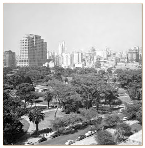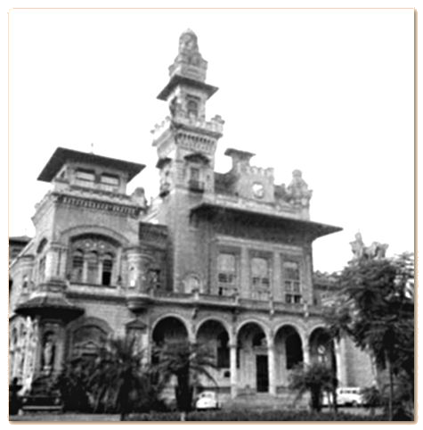 O Palácio das Indústrias resume este curioso e interessante período da atividade arquitetônica do “Novo Regno” de Itália” , com suas merlas, xx x “loggias” , torreões, fontes etc.