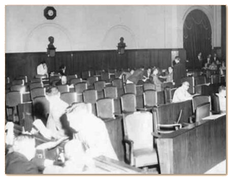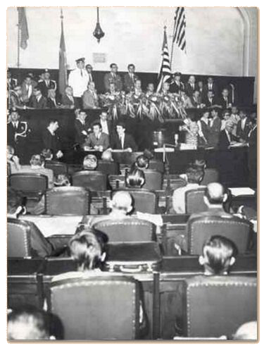 Com o fim do Estado Novo, o Palácio passa a abrigar, a partir de 1947, a Assembléia Legislativa, sendo rebatizado como Palácio 9 de Julho e perdendo todas as características arquitetônicas internas de um edifício para exposições: os estábulos são destruídos, surgem as divisórias etc. O próprio Escritório Técnico Severo Villares – herdeiros de Ramos de Azevedo – executou as obras de transformação do Palácio em Assembléia Legislativa.
