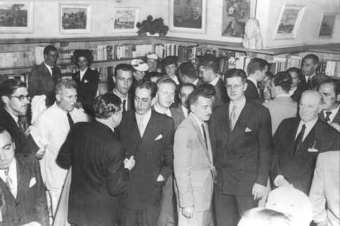 Arthur Heládio Neves, Elias Chaves Neto, Caio Prado Júnior e Helena Nioac na Editora Brasiliense (abril – 1944).