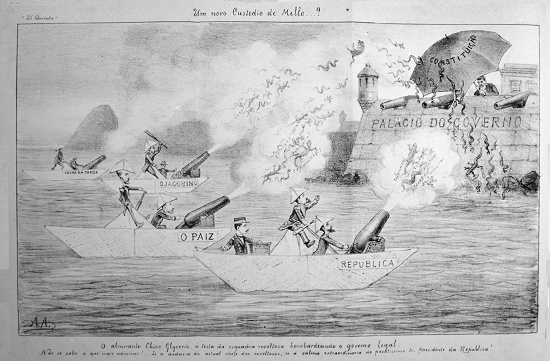 Prudente de Moraes e Francisco Glicério romperam relações e o Partido Republicano Federal dividiu-se. Vários jornais atacam Prudente (Folha da Tarde, O Jacobino, O Paiz). Prudente de Moraes se protege sob o guarda-chuva da Constituição, pois é o presidente eleito. Don Quixote (Rio de Janeiro) Nº 85 – 26/7/1897