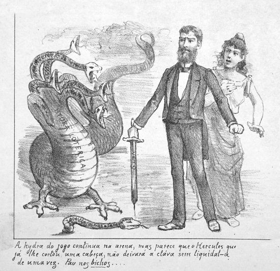 Prudente de Moraes era conhecido por sua ferrenha oposição às loterias. Enquanto deputado provincial, apresentou vários projetos de lei visando extingui-las. Aqui, como presidente, ele ainda não conseguiu cortar as diversas cabeças do “monstro lotérico”. Don Quixote (Rio de Janeiro) nº 38 – 26/10/1895