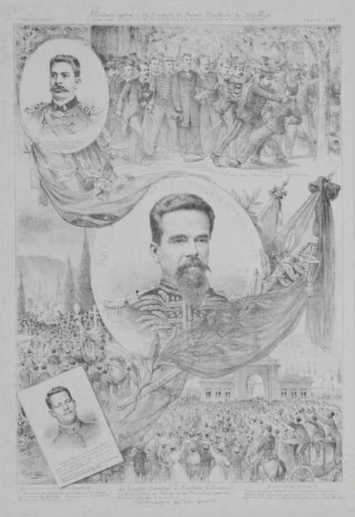 Homenagem, de autoria de Angelo Agostini publicada na revista Don Quixote, ao Marechal Carlos Machado Bittencourt, Ministro da Guerra, assassinado no atentado contra a vida do Presidente Prudente de Moraes, em 5 de novembro de 1897.