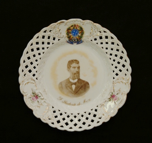 Prato comemorativo com a efígie do presidente Prudente de Moraes.